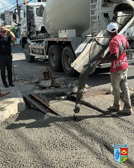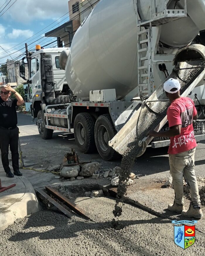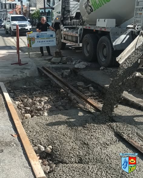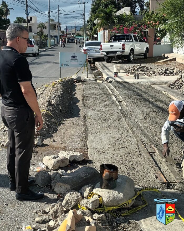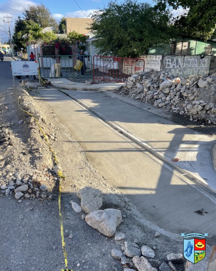 Villa Sombrero, Baní. – La Junta Municipal de Villa Sombrero continúa avanzando en los trabajos de construcción de un badén en la intersección de las calles Restauración e Inmaculada Concepción, como parte de las acciones que buscan mejorar el drenaje pluvial y la seguridad vial en esa zona.