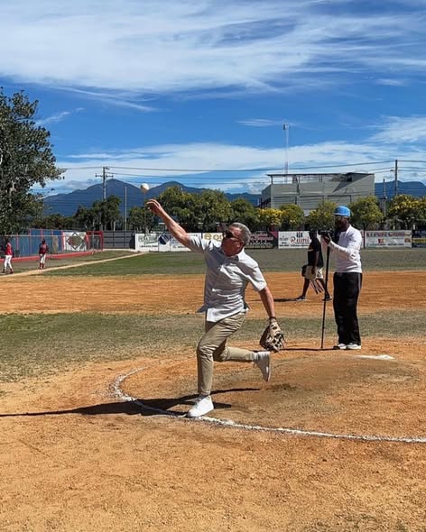 Villa Sombrero, Baní. – El alcalde del Distrito Municipal de Villa Sombrero, Lic. Juan Peña, participó en la inauguración de la Liga Triple A, donde tuvo el honor de realizar el lanzamiento de la primera bola, dejando formalmente iniciado el torneo deportivo.
