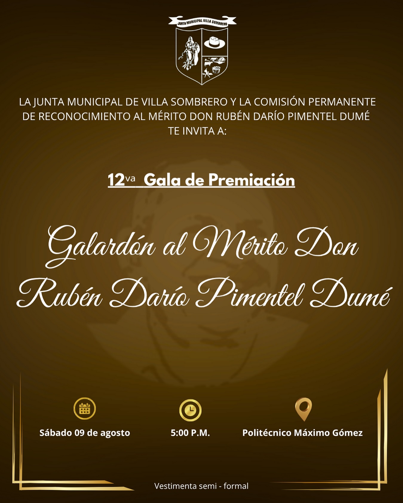 La invitación es para todos. Ven y forma parte de la 12ᵛᵃ entrega de Reconocimiento al Mérito Don Rubén Darío Pimentel Dumé.
