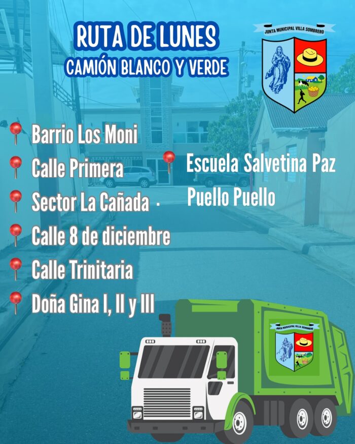 Compartimos con ustedes las rutas de recolección de desechos sólidos por sectores y barrios, para que juntos mantengamos nuestra comunidad limpia y ordenada. ![]()