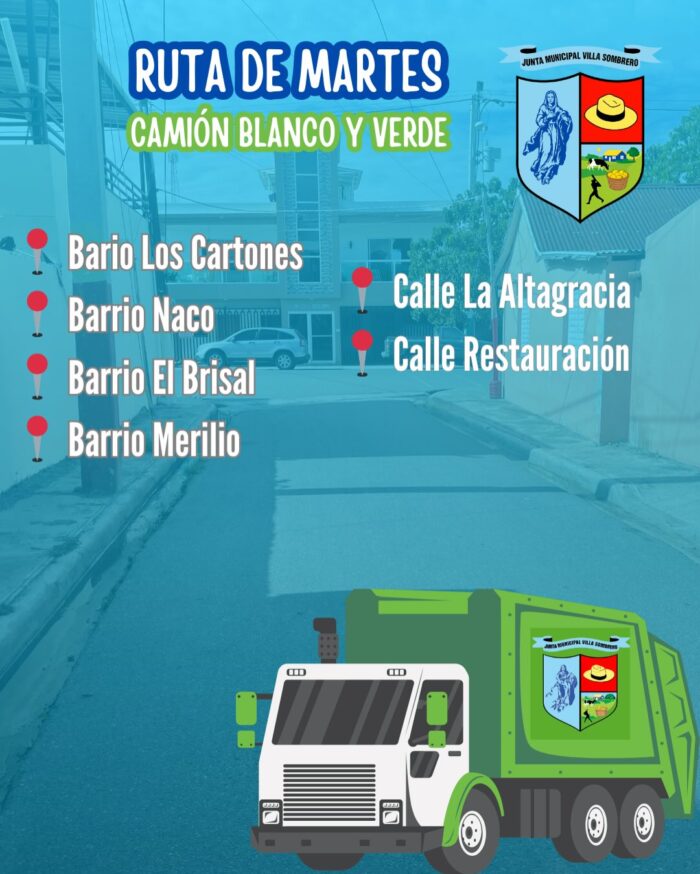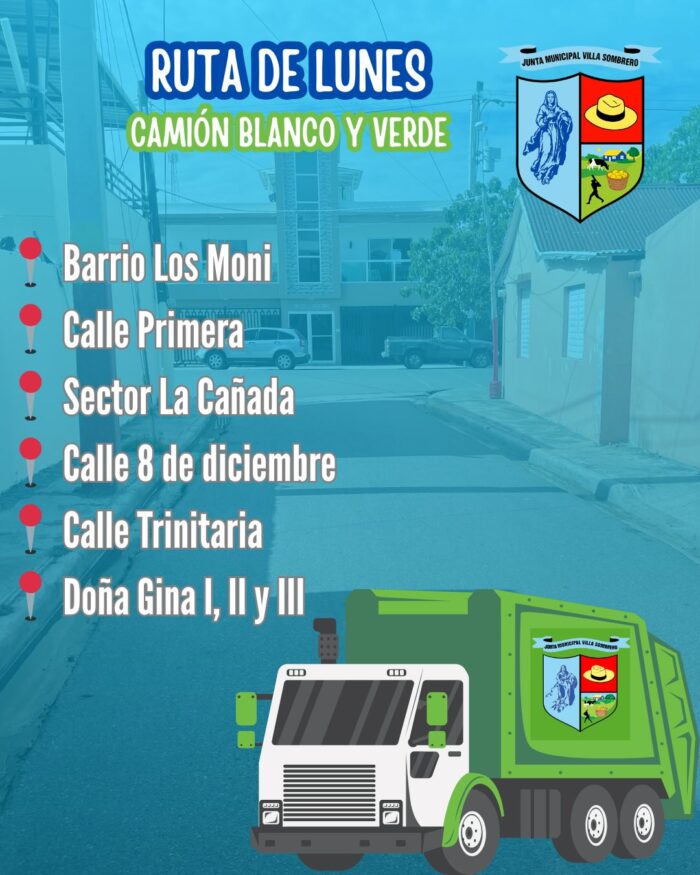 Compartimos con ustedes la actualización de las rutas de recolección de desechos sólidos por sectores y barrios, para que juntos mantengamos nuestra comunidad limpia y ordenada. ![]()