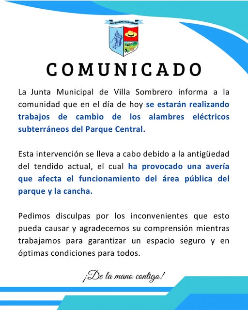 Hoy estaremos realizando trabajos de cambio de alambres eléctricos subterráneos en el Parque Central