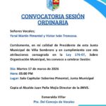 Hora: 5:00pm Transmisión en vivo por Facebook: Junta Distrito Villa Sombrero