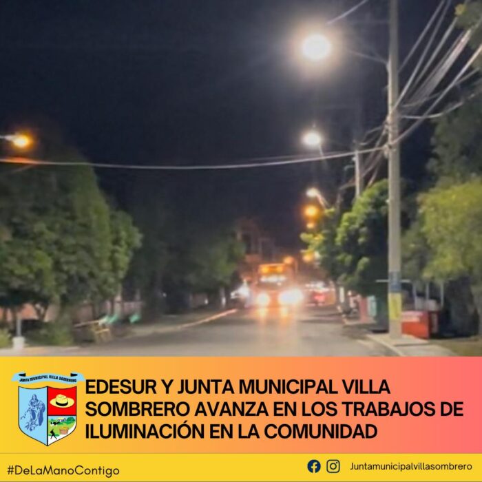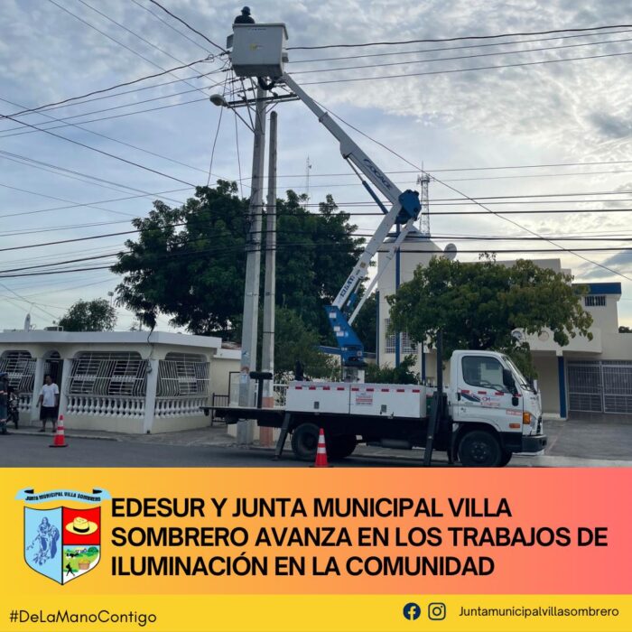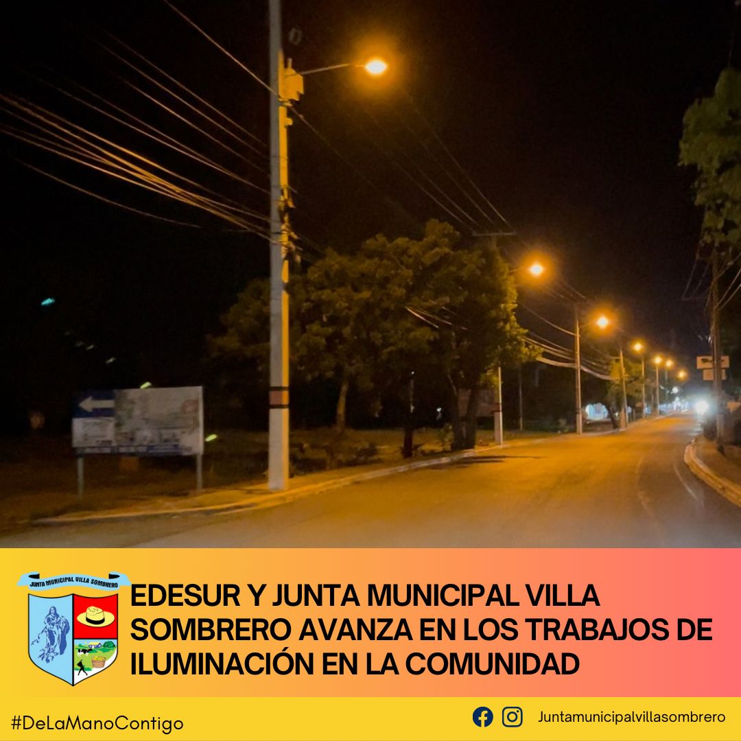Edesur, en conjunto con la Junta Municipal de Villa Sombrero, continúa trabajando arduamente para mejorar la iluminación de nuestra comunidad. Este esfuerzo conjunto tiene como objetivo garantizar que nuestras calles y espacios públicos cuenten con una iluminación adecuada, promoviendo mayor seguridad y bienestar para todos.