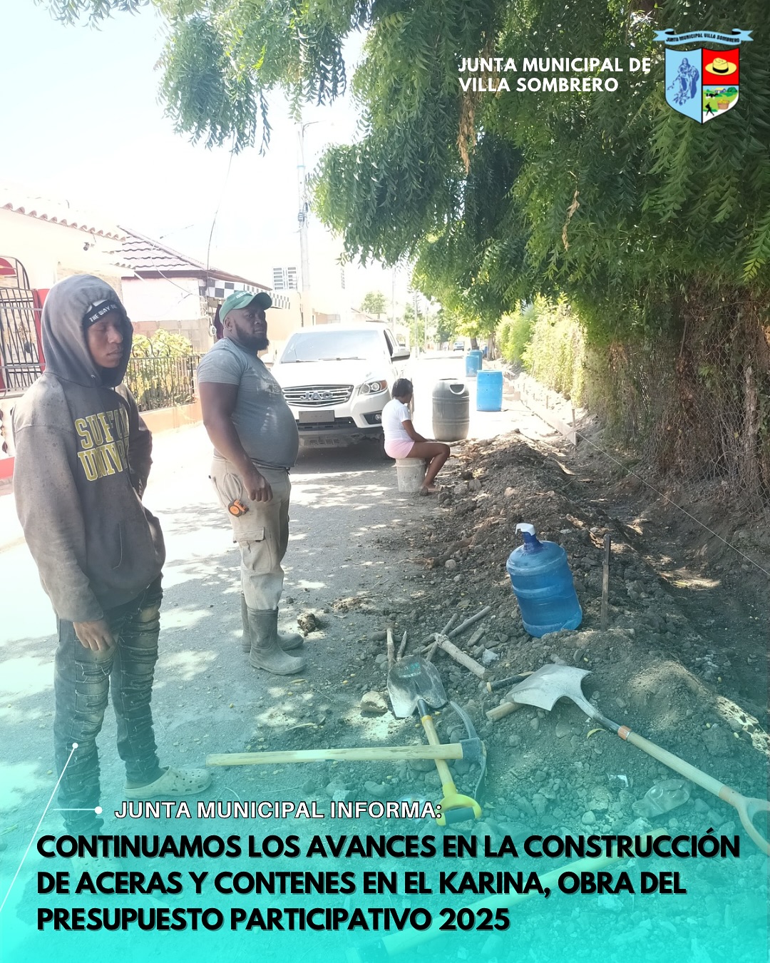 En el Karina, continuamos con los trabajos de construcción de aceras y contenes, una obra gestionada a través del Presupuesto Participativo, con una inversión de RD$550,000.