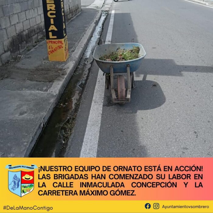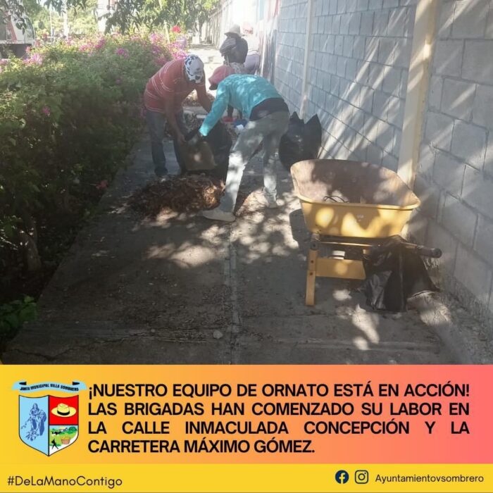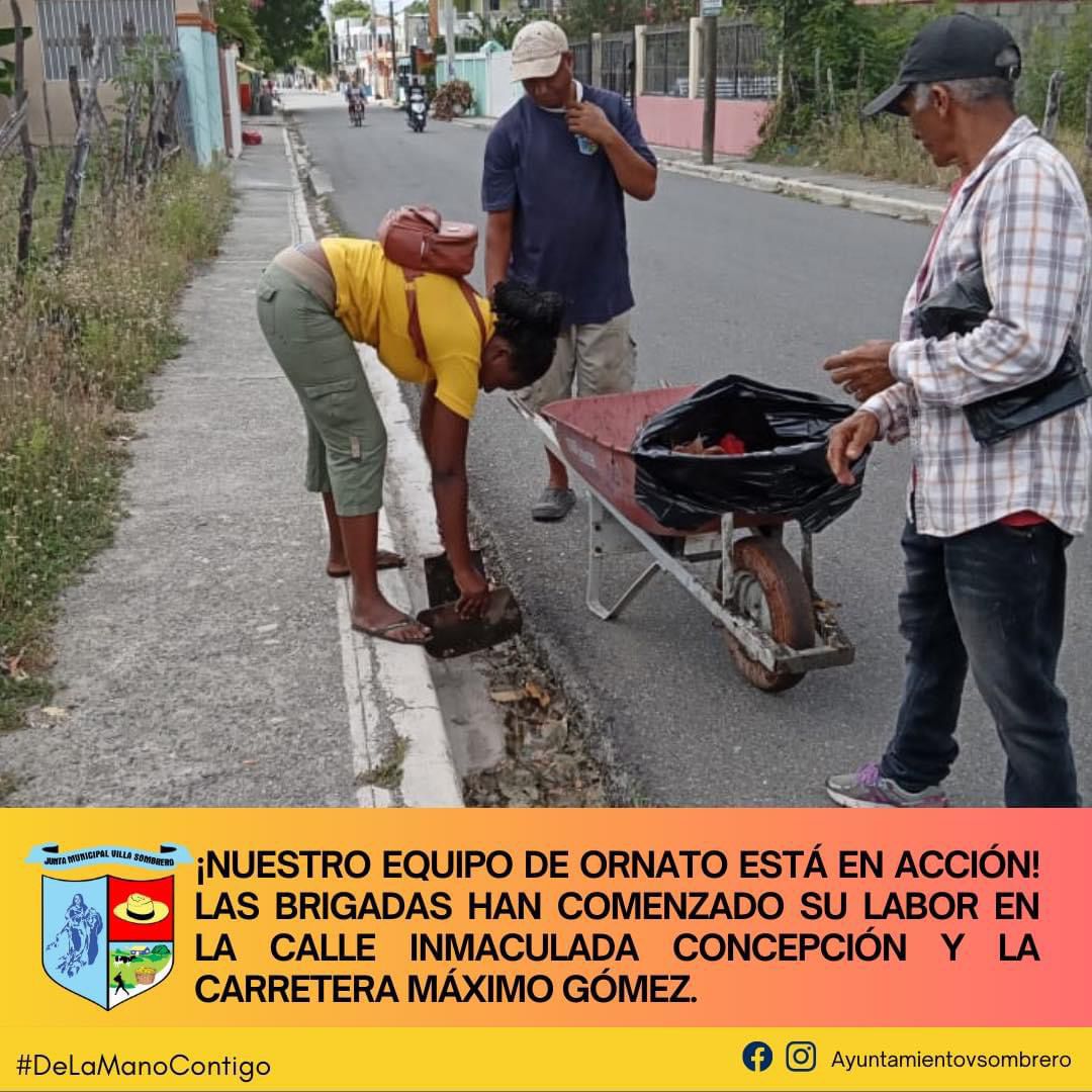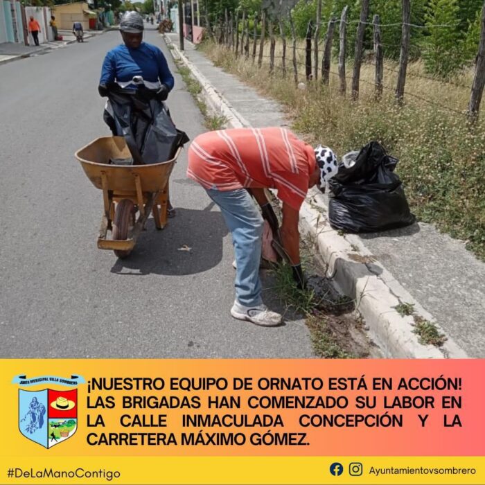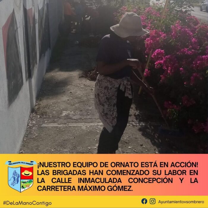 El equipo de Ornato ha puesto manos a la obra en Villa Sombrero, iniciando labores en la calle Inmaculada Concepción y la Carretera Máximo Gómez. Este esfuerzo busca mejorar el entorno urbano, embelleciendo las áreas públicas para crear un ambiente más limpio y agradable para todos los residentes.