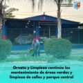 Junta municipal realiza mantenimiento de áreas verdes y limpiezas de calles y parque central
