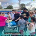 El alcalde Juan Peña compartió con un grupo de niños en el parque infantil de la comunidad, disfrutando junto a ellos de un helado como parte de un momento dedicado al esparcimiento y la sana convivencia.