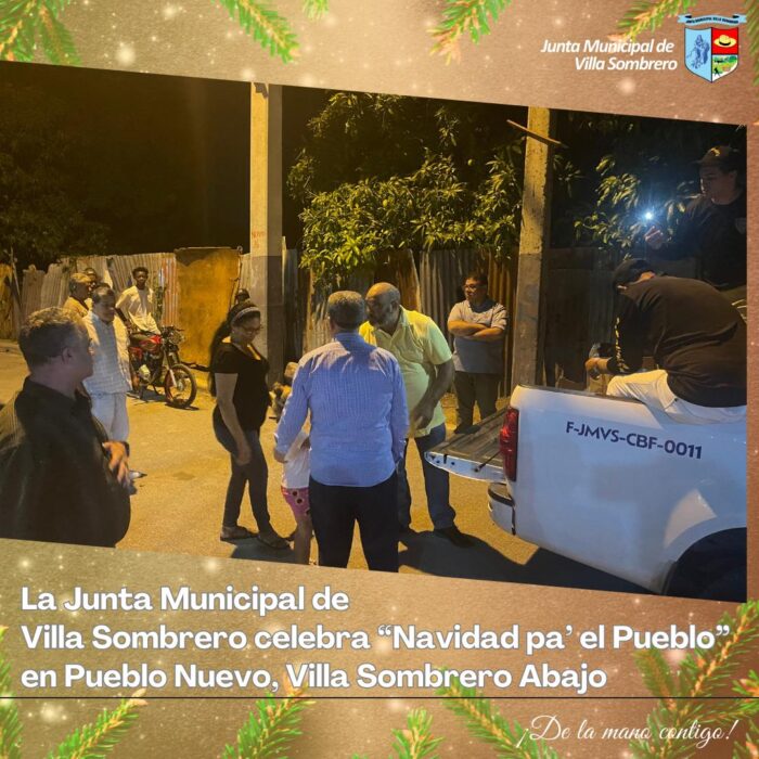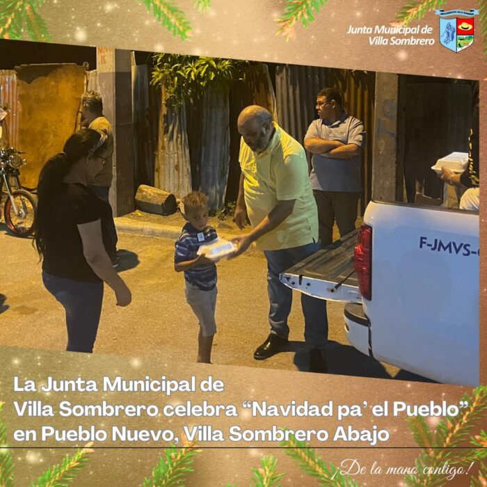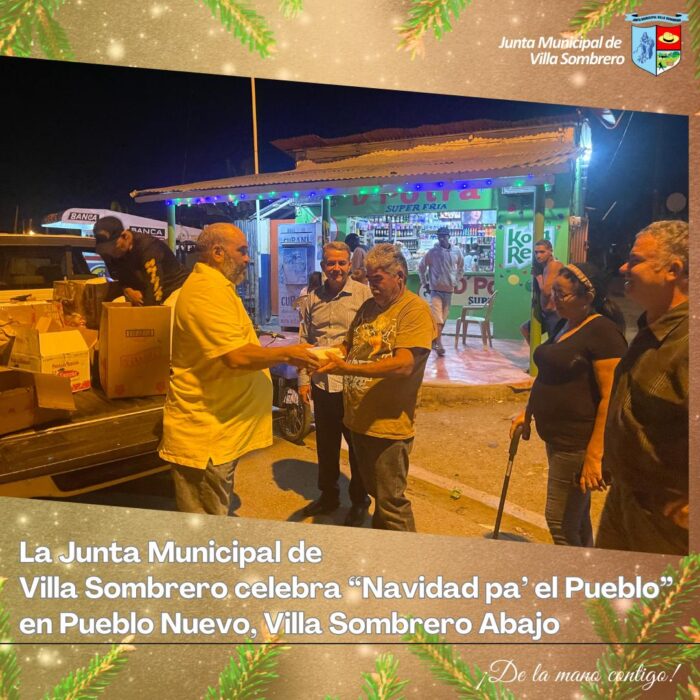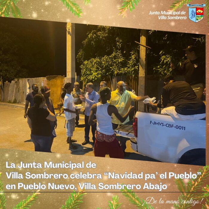 La Junta Municipal de Villa Sombrero, a través de su Oficina de Cooperación Nacional e Internacional, junto a la Iglesia Faro de Luz, realizó una cena navideña en el sector Pueblo Nuevo, Villa Sombrero Abajo, como parte de la iniciativa “Navidad Pa’ El Pueblo”.