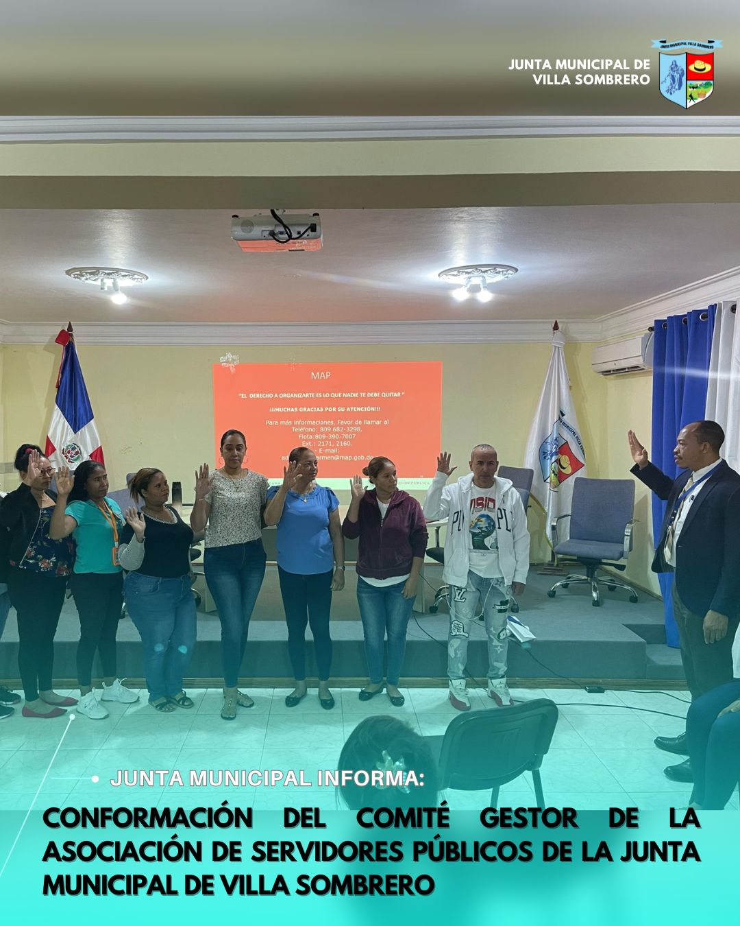 Villa Sombrero – Con la presencia del Analista del Ministerio de Administración Pública, autoridades de esta institución y la participación activa de los servidores públicos, se llevó a cabo una charla de orientación para la conformación del Comité Gestor de la Asociación de Servidores Públicos de la Junta Municipal de Villa Sombrero.