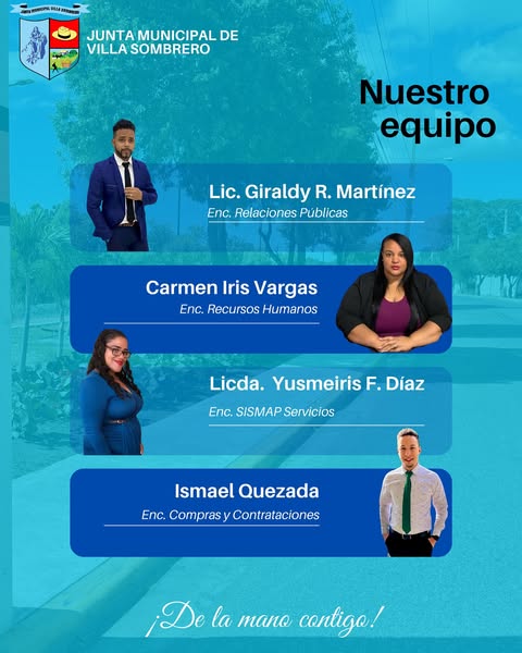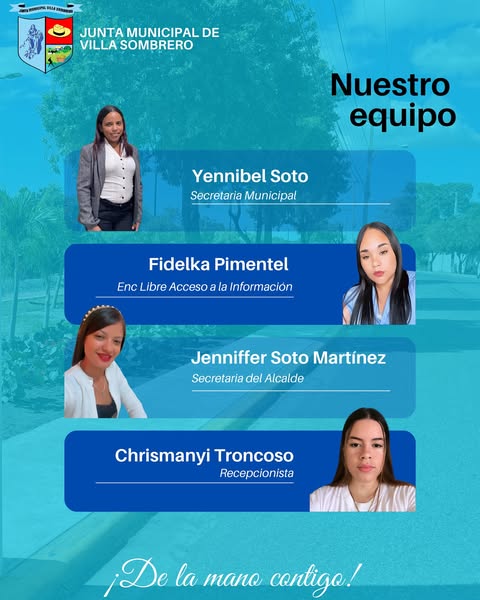 En la Junta Municipal de Villa Sombrero trabajamos con transparencia, compromiso y vocación de servicio. Te presentamos a los colaboradores del área administrativa que cada día hacen posible la buena marcha de nuestra gestión.