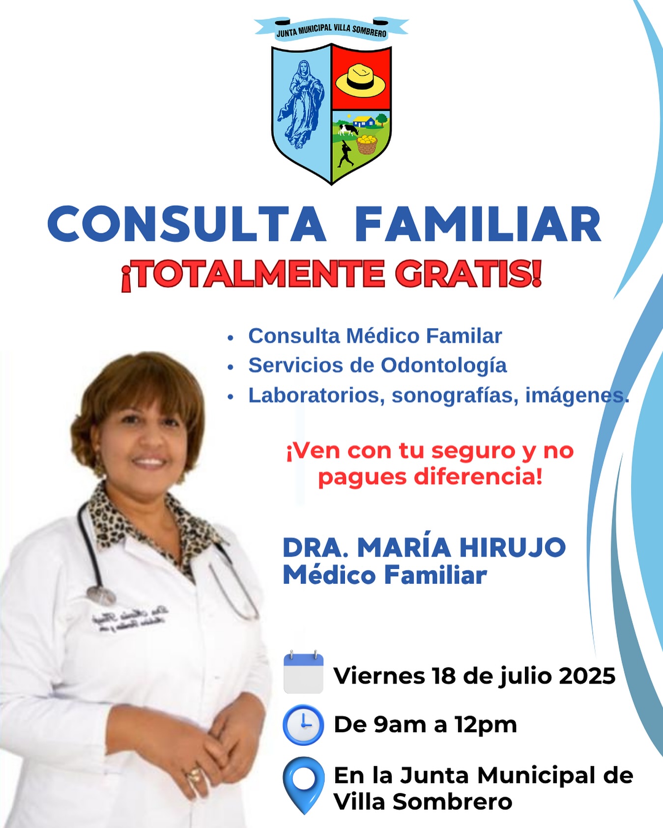 #VillaSombrero#ConsultaFamiliar#SaludGratuita#DeLaManoContigo#JuntaMunicipal