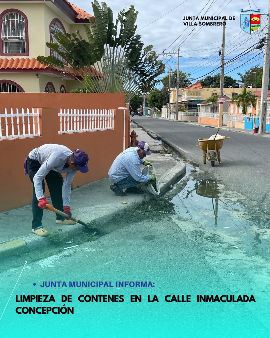 La Junta Municipal de Villa Sombrero dio inicio a una jornada de limpieza en los contenes de la calle Inmaculada Concepción, con el objetivo de garantizar espacios más limpios y seguros para la comunidad.