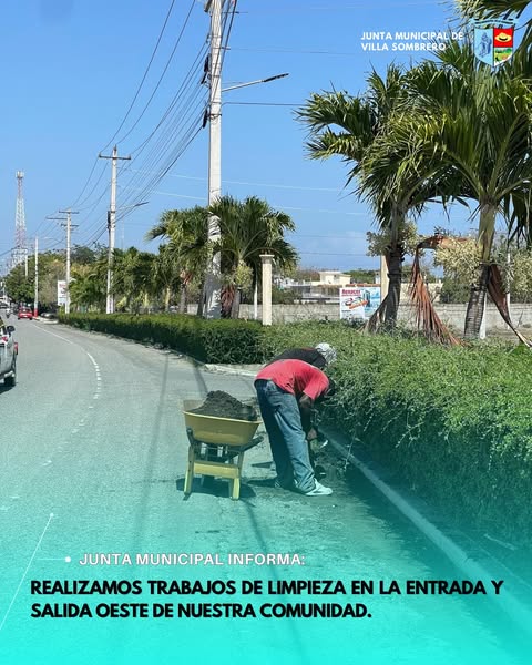 Villa Sombrero, Como parte de los esfuerzos continuos por mantener un entorno limpio y ordenado, la Junta Municipal de Villa Sombrero realizó este lunes una jornada de limpieza en la entrada y salida oeste de la comunidad.