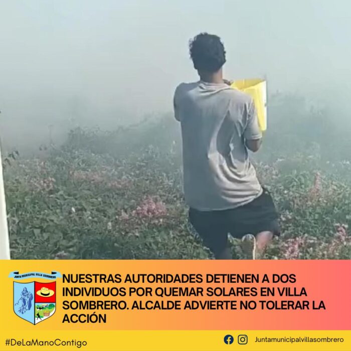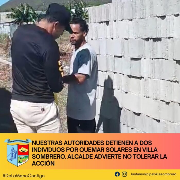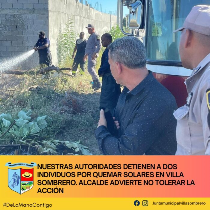 En un operativo realizado por las autoridades locales, dos individuos fueron sorprendidos quemando solares en la comunidad de Villa Sombrero. La acción fue inmediatamente denunciada, ya que este tipo de actos atenta contra la ley y pone en riesgo la salud de los munícipes.