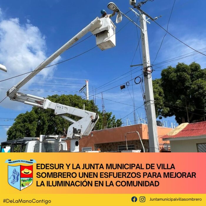En un esfuerzo conjunto para garantizar una mejor calidad de vida y seguridad en Villa Sombrero, Edesur y la Junta Municipal de Villa Sombrero han iniciado trabajos de reparación y colocación de lámparas en diversas calles de la comunidad. Este proyecto forma parte de un plan integral que busca asegurar la correcta iluminación de todo el Distrito Municipal.