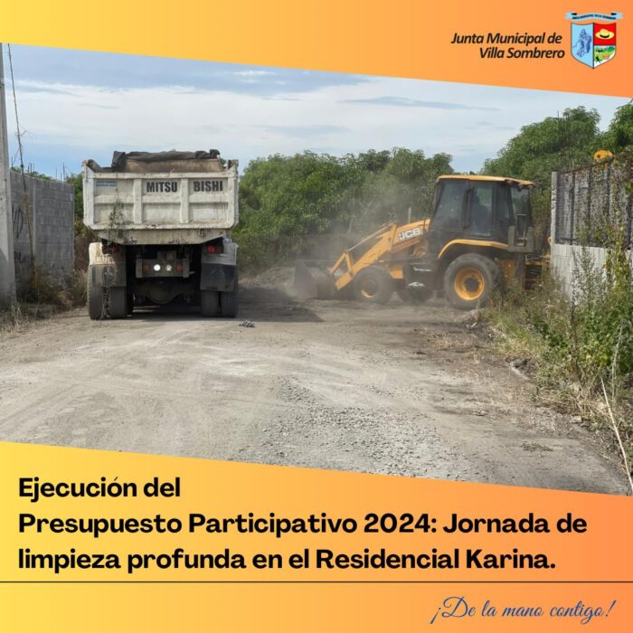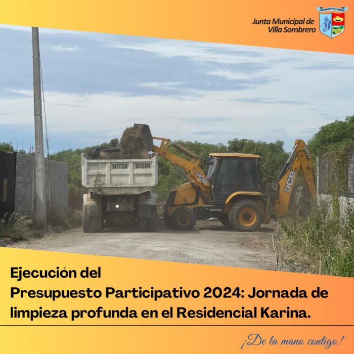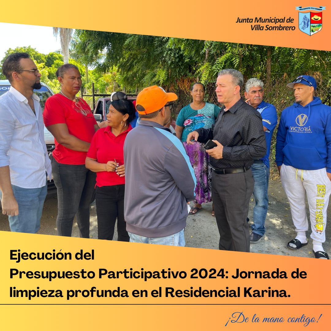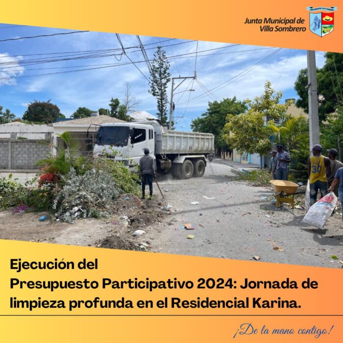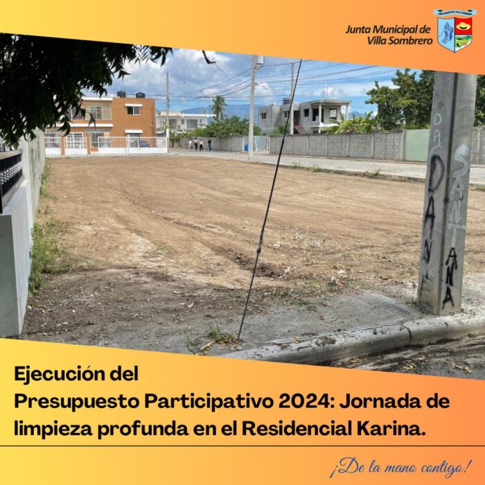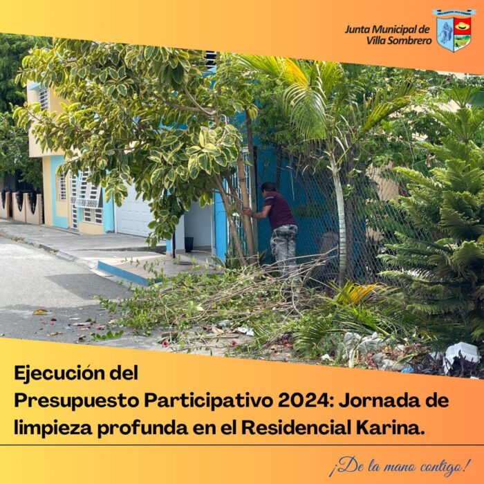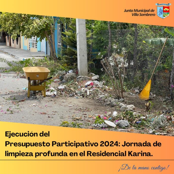 En el marco de la ejecución del Presupuesto Participativo 2024, el Ayuntamiento de Villa Sombrero ha iniciado una jornada de limpieza y mantenimiento en el Residencial Karina. Esta acción comunitaria incluyó la limpieza profunda de calles, aceras, contenes, solares, y la poda de árboles, con el objetivo de mejorar la salubridad y el bienestar de los residentes de la zona.
