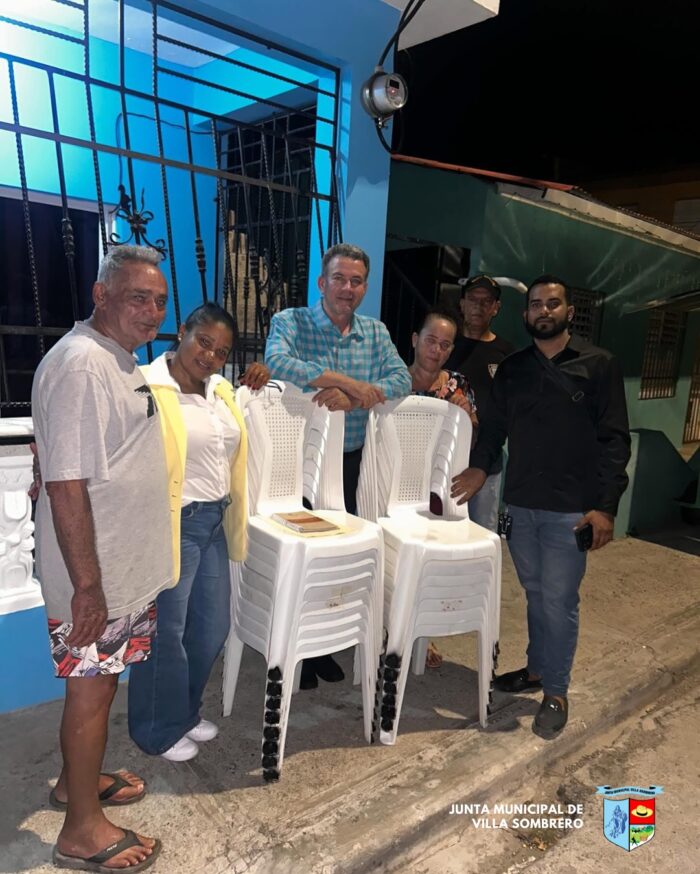 Como muestra de su compromiso con el fortalecimiento de la participación comunitaria, nuestro alcalde, Lic. Juan Peña Mejía, hizo entrega de sillas a las diferentes juntas de vecinos de Villa Sombrero. Esta acción busca apoyar las labores organizativas y facilitar el desarrollo de reuniones y actividades en beneficio de cada sector.
