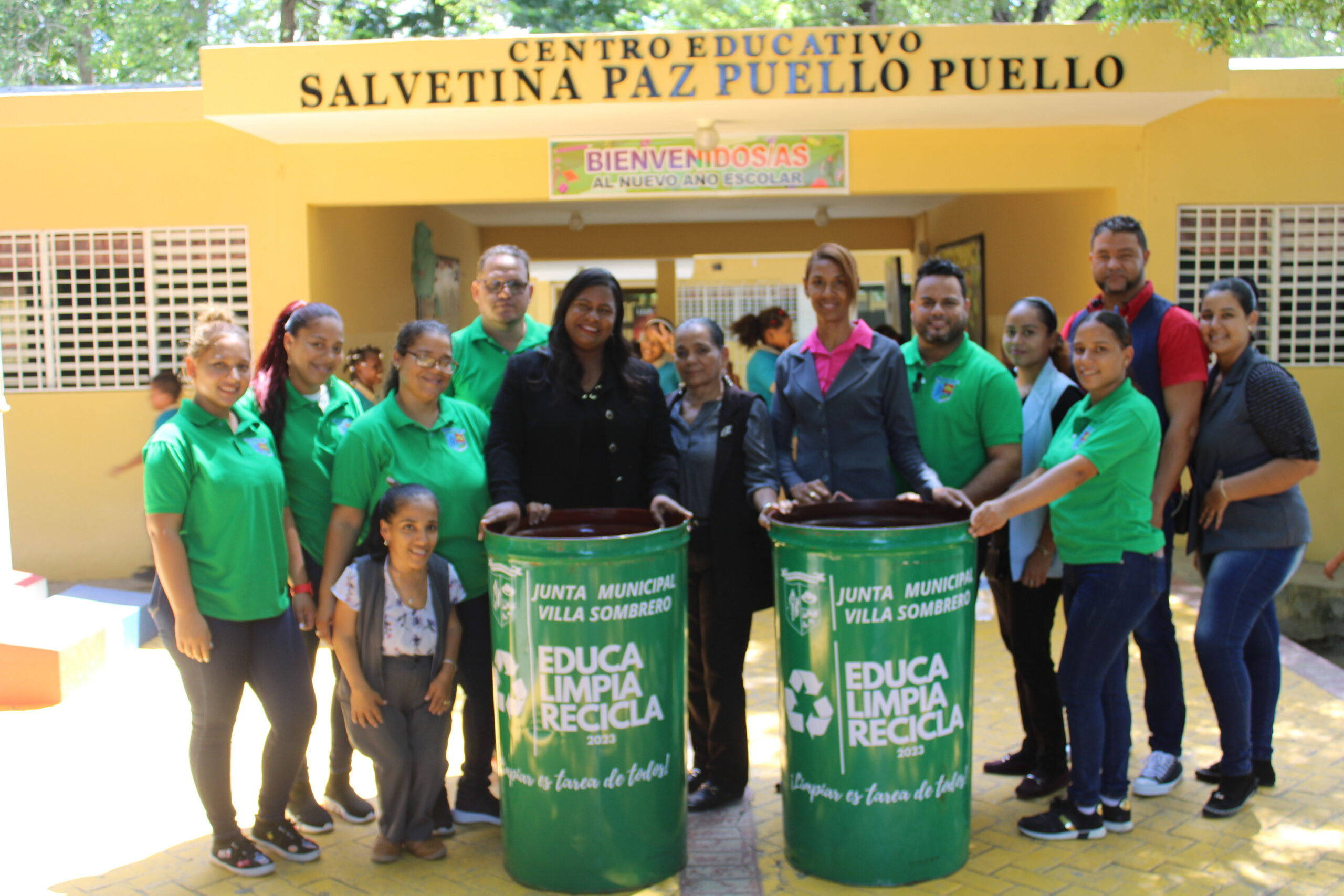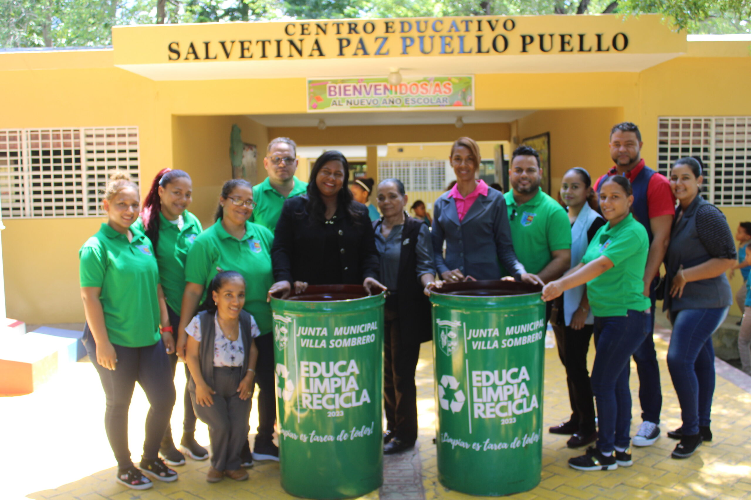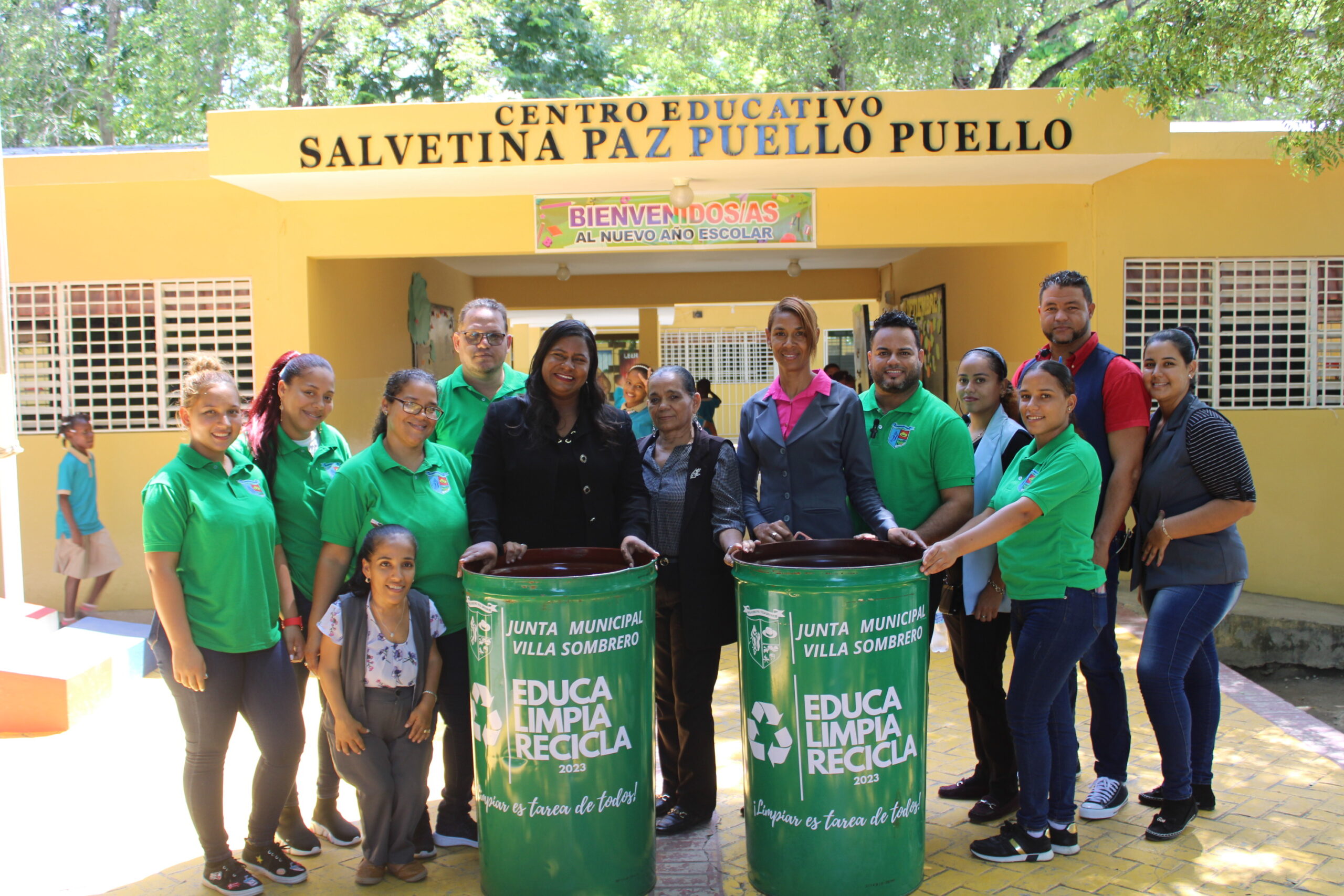 La Directora de la Junta Municipal de Villa Sombrero, la Licda. Yanadi Leyba Gómez, quien estuvo en el primer Encuentro Inaugural de la Ruta Educativa, hizo entrega de Zafacones identificados con la Campaña Educativa, con el objetivo de que el Centro Educativo tenga espacios Limpios para todos sus estudiantes, Ya que Limpiar es tarea de Todos.