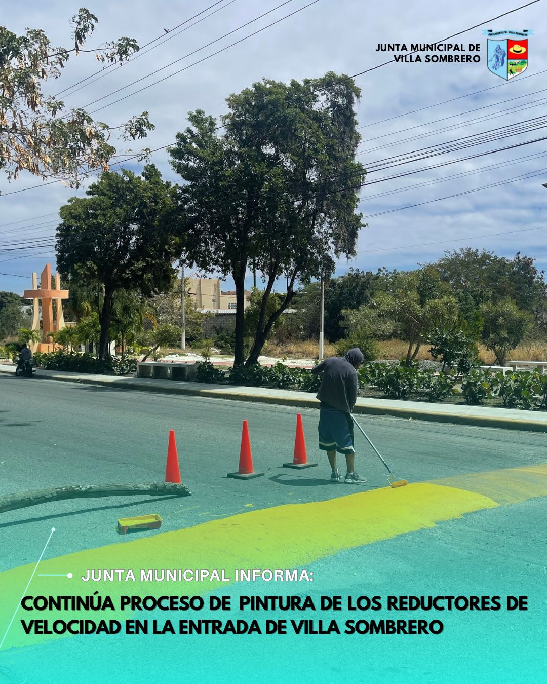 Villa Sombrero – La Junta Municipal de Villa Sombrero sigue avanzando con los trabajos de pintura en los reductores de velocidad ubicados en la entrada de la comunidad, como parte del compromiso con la seguridad vial y el ordenamiento del tránsito.
