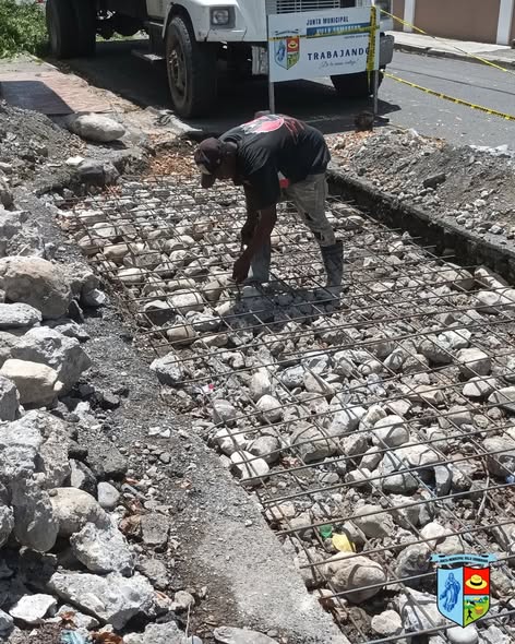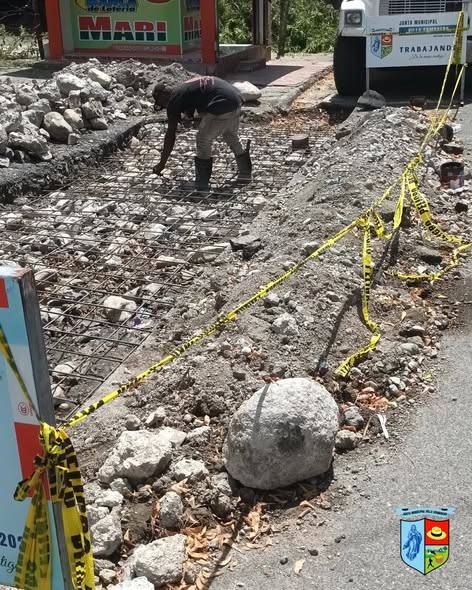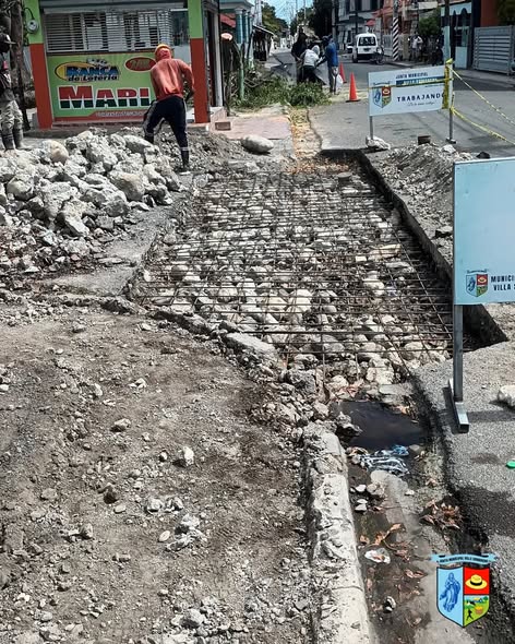 Villa Sombrero, Baní. – La Junta Municipal de Villa Sombrero continúa avanzando en los trabajos de construcción de un badén en la intersección de las calles Restauración e Inmaculada Concepción, como parte de las acciones que buscan mejorar el drenaje pluvial y la seguridad vial en esa zona.