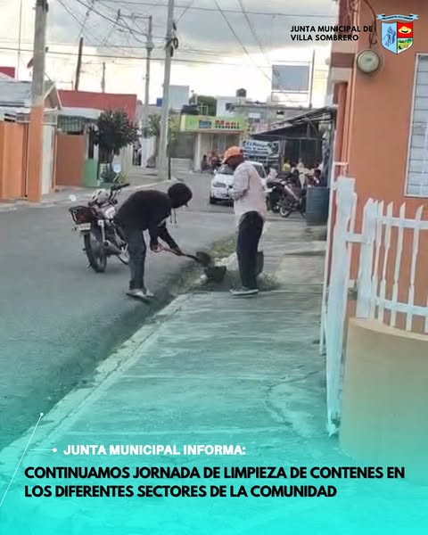 Villa Sombrero, Baní. – La Junta Municipal de Villa Sombrero continúa con los trabajos de limpieza de contenes como parte de su compromiso con el mantenimiento y embellecimiento de los espacios públicos del distrito.
