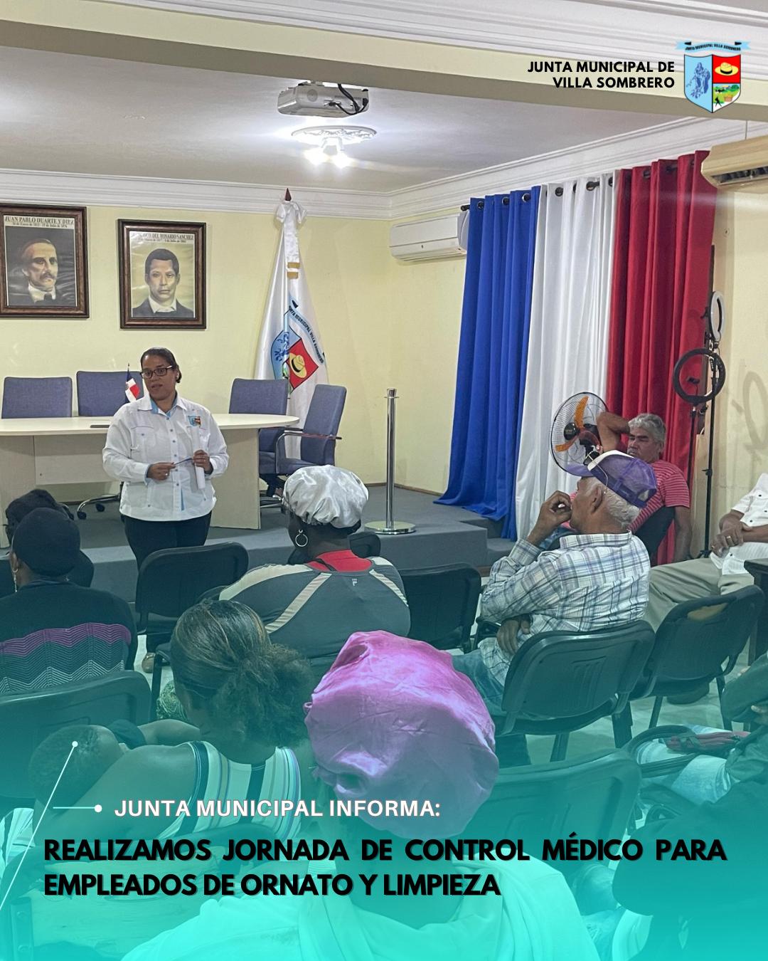 La Junta Municipal de Villa Sombrero llevó a cabo una Jornada de Control Médico dirigida a los empleados del departamento de Ornato y Limpieza, con el propósito de garantizar su óptimo estado de salud para el desempeño de sus funciones.