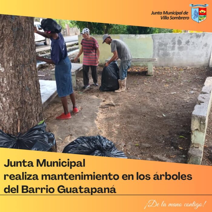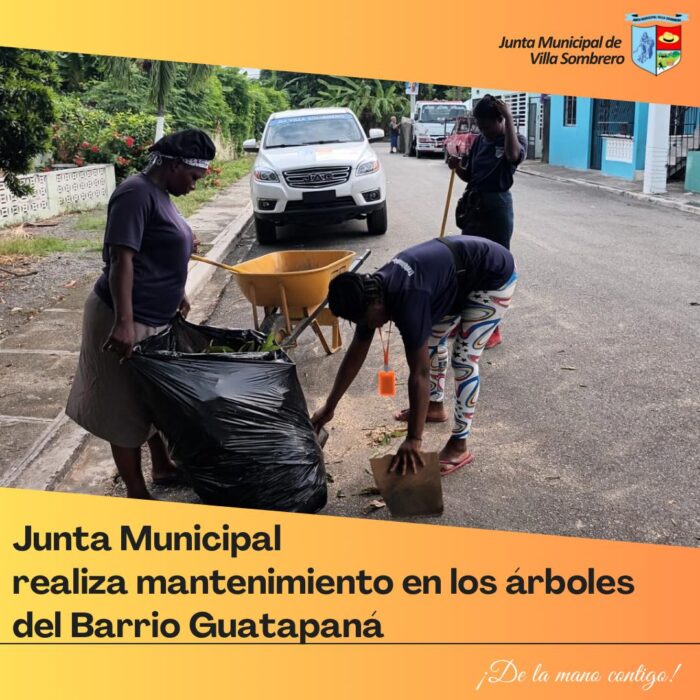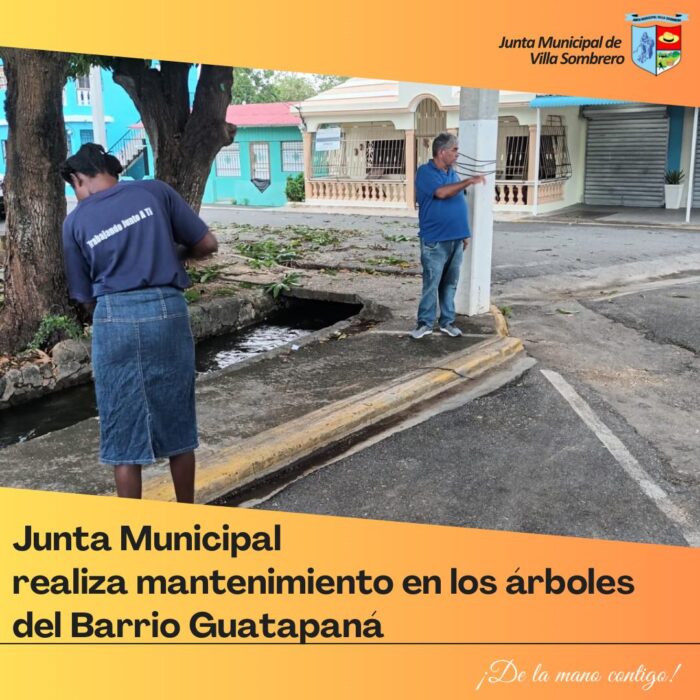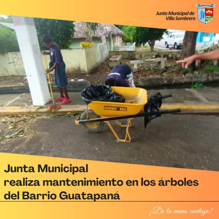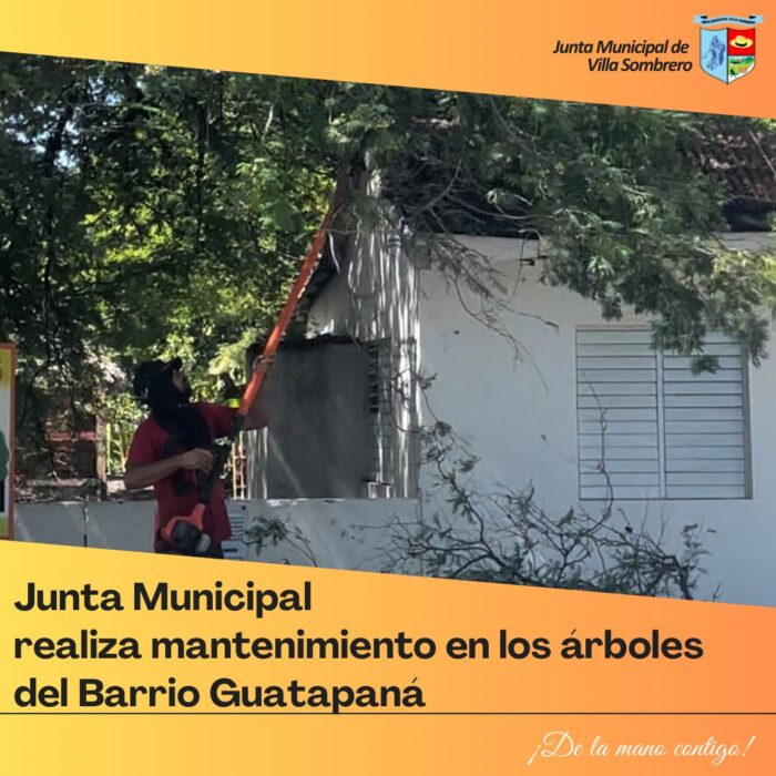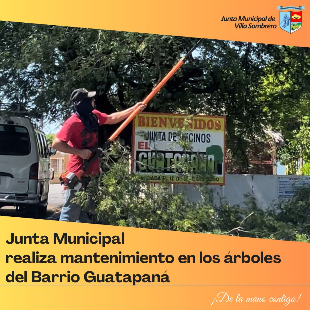 La Junta Municipal de Villa Sombrero continúa con sus labores de mantenimiento y embellecimiento de los espacios públicos. En esta ocasión, se llevó a cabo una jornada de poda de árboles en la entrada del Barrio Guatapaná, como parte de las acciones para garantizar la seguridad vial y mejorar el entorno visual de la comunidad.