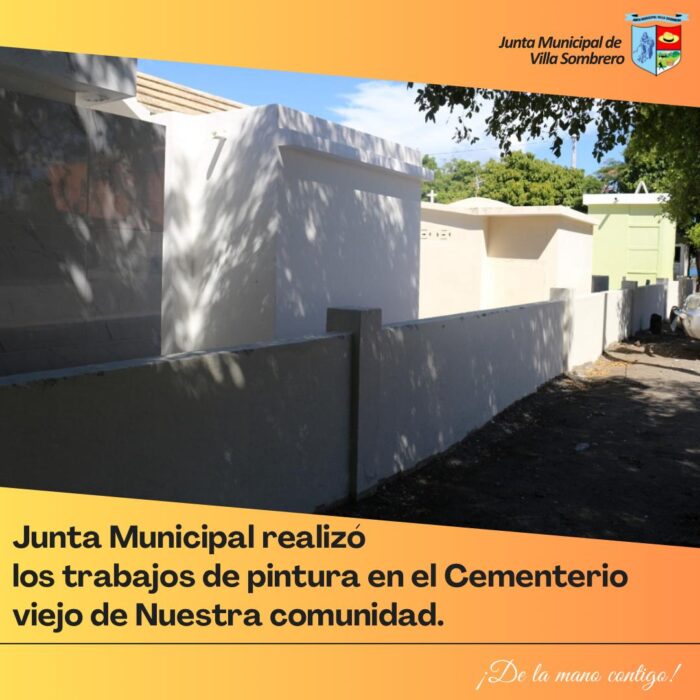 En un esfuerzo por mantener en óptimas condiciones los espacios públicos de la comunidad, la Junta Municipal de Villa Sombrero ha completado los trabajos de pintura en el Cementerio Viejo. Esta acción, que forma parte del plan de mantenimiento y embellecimiento de la localidad, busca preservar este lugar de importancia histórica y cultural para la comunidad.