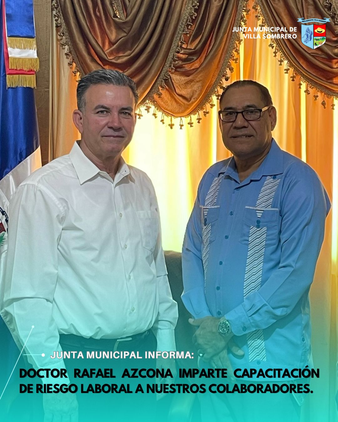 La Junta Municipal de Villa Sombrero llevó a cabo una importante jornada de capacitación sobre riesgos laborales, impartida por el Dr. Rafael Azcona, con el objetivo de fortalecer las medidas de prevención y seguridad entre sus colaboradores.