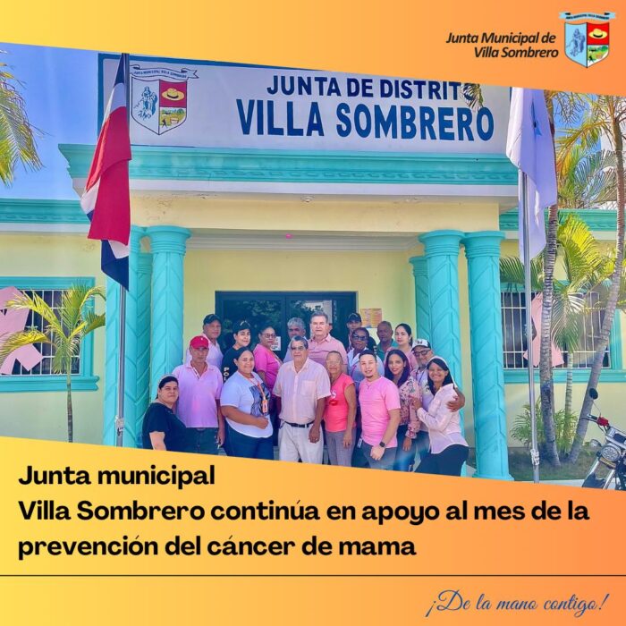 La Junta Municipal de Villa Sombrero se une a la lucha en el Mes de Concienciación sobre el Cáncer de Mama, reafirmando nuestro compromiso con la salud y bienestar de nuestra comunidad. Juntos, promovemos la importancia de la detección temprana y el acceso a tratamientos. ¡Porque unidos podemos salvar vidas!