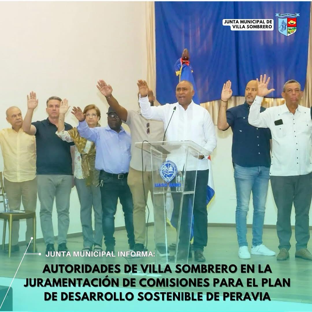 Baní, R.D. – El presidente de la Junta Municipal de Villa Sombrero, Lic. Juan Peña Mejía, junto a la vicepresidenta de la Sala Capitular, @esmeraldavillar423 , participaron en el acto de juramentación de las comisiones técnicas para la elaboración del Plan de Desarrollo Sostenible de la Provincia Peravia 2025-2055.