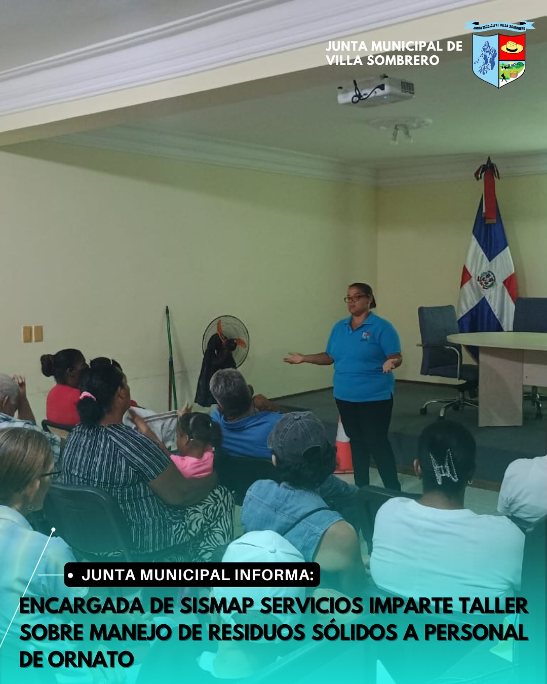 Licda. Yusmeiris Díaz, impartió un taller dirigido al personal de ornato de la Junta Municipal de Villa Sombrero. La capacitación tuvo como propósito fortalecer los conocimientos de los colaboradores sobre prácticas adecuadas en el manejo de los desechos, con el fin de promover una gestión más eficiente y sostenible en beneficio de la comunidad.