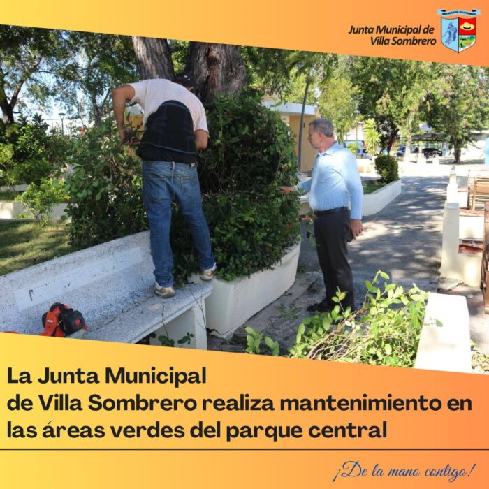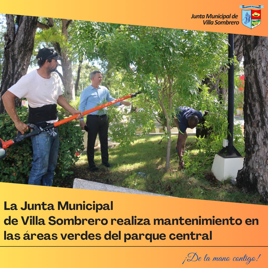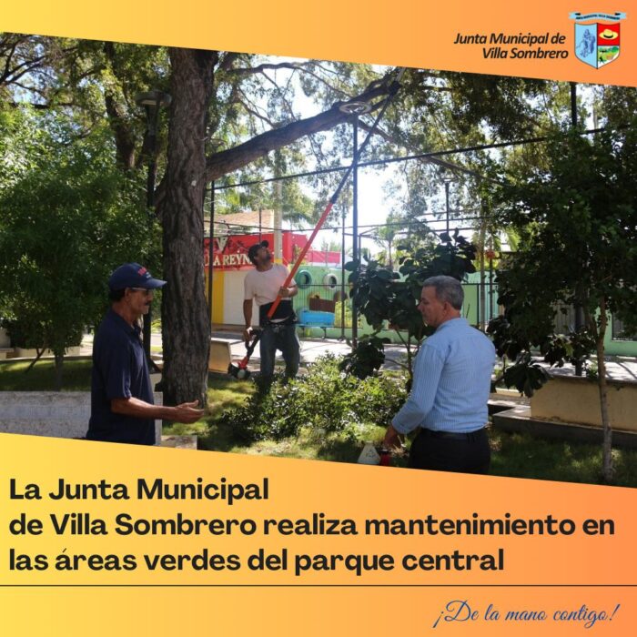 La Junta Municipal de Villa Sombrero ha llevado a cabo un operativo de mantenimiento en las áreas verdes del parque central de la comunidad. Como parte de los trabajos, se ha realizado la poda de árboles, con el objetivo de mejorar la visibilidad y brindar mayor claridad a los espacios públicos.