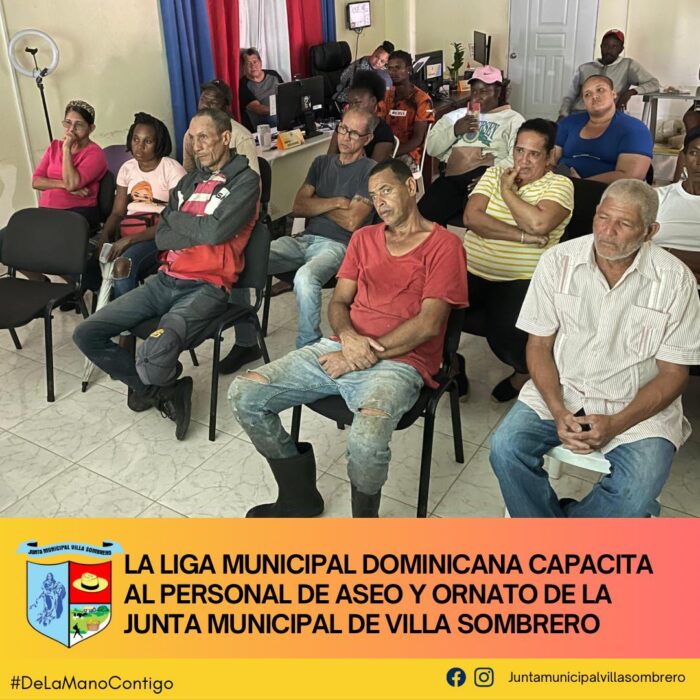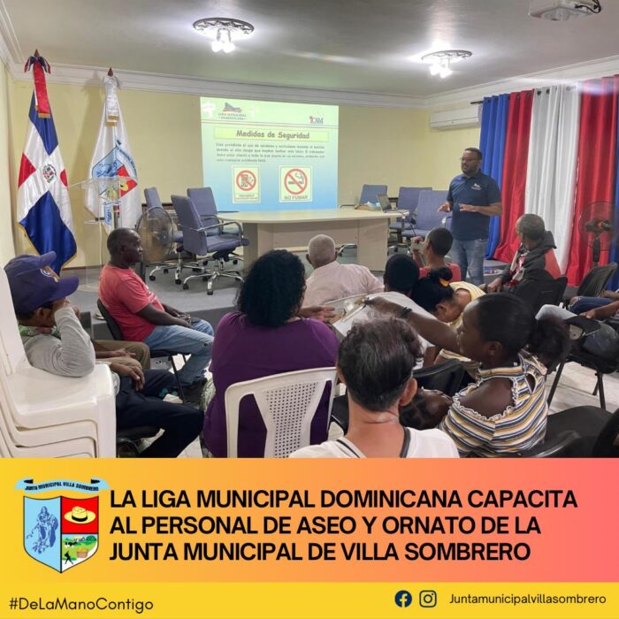 La Liga Municipal Dominicana, a través de su Instituto de Capacitación Municipal, impartió el curso-taller “Barrido y recolección en vías y espacios públicos”, dirigido al personal de Aseo y Ornato de la Junta de Distrito Municipal de Villa Sombrero.