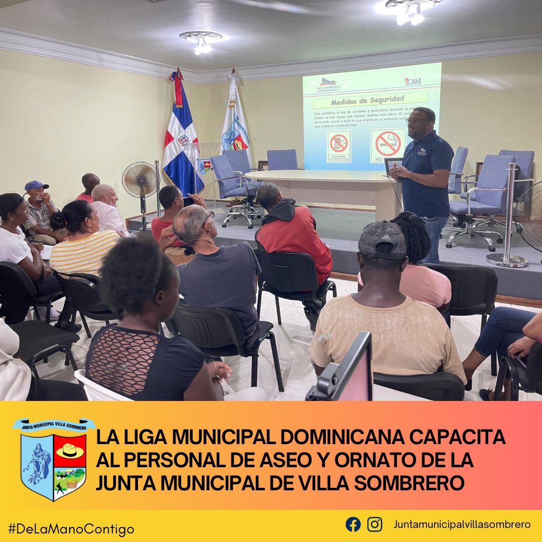 La Liga Municipal Dominicana, a través de su Instituto de Capacitación Municipal, impartió el curso-taller “Barrido y recolección en vías y espacios públicos”, dirigido al personal de Aseo y Ornato de la Junta de Distrito Municipal de Villa Sombrero.