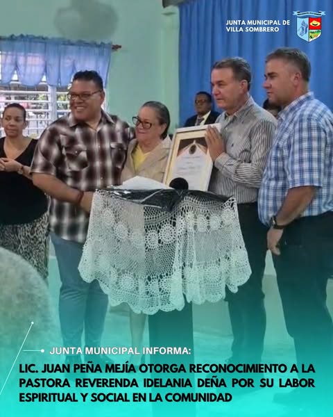 Villa Sombrero, Baní.– En un acto cargado de emotividad, el Licenciado Juan Peña Mejía entregó un reconocimiento especial a la pastora Reverenda Idelania Peña, en honor a sus aportes significativos a la comunidad a través de la predicación, enseñanza y difusión del Evangelio de nuestro Señor Jesucristo.