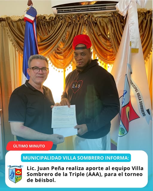 Villa Sombrero.– El Lic. Juan Peña realizó un aporte al equipo Villa Sombrero de la categoría Triple A (AAA), como respaldo a su participación en el torneo de béisbol que se desarrollará a partir del domingo 29 de marzo en la comunidad.