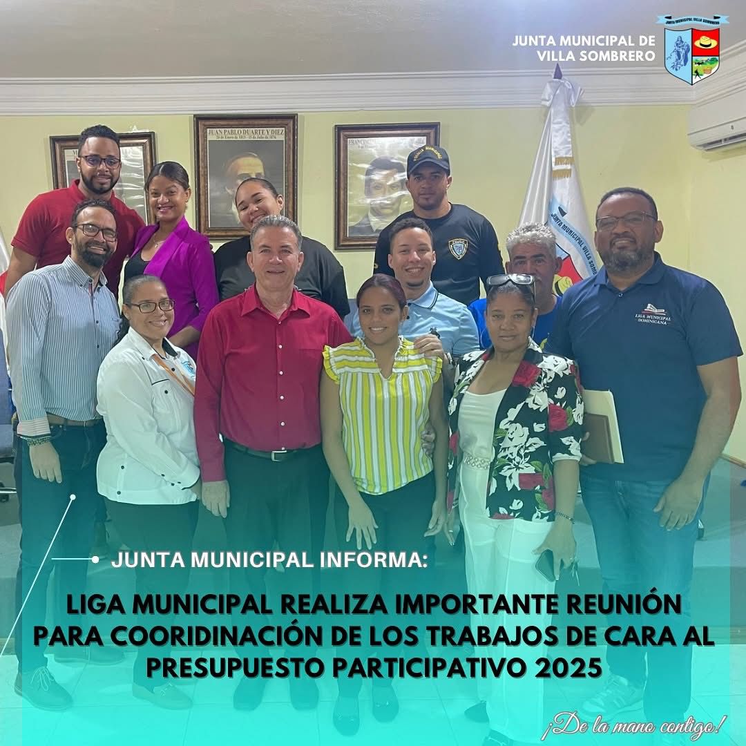 El alcalde de Villa Sombrero, Lic. Juan Peña Mejía, junto a la vicepresidenta de la Sala Capitular, Sra. Esmeralda Villar, el Edil Junior Troncoso y el equipo administrativo, sostuvieron un encuentro con el Lic. Manuel Peña, Coordinador de Control Interno Municipal de la Liga Municipal Dominicana.