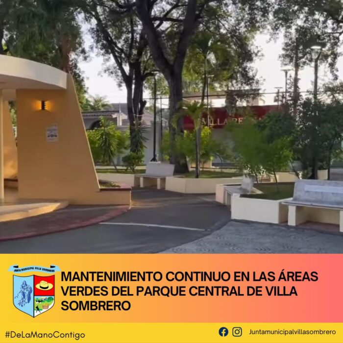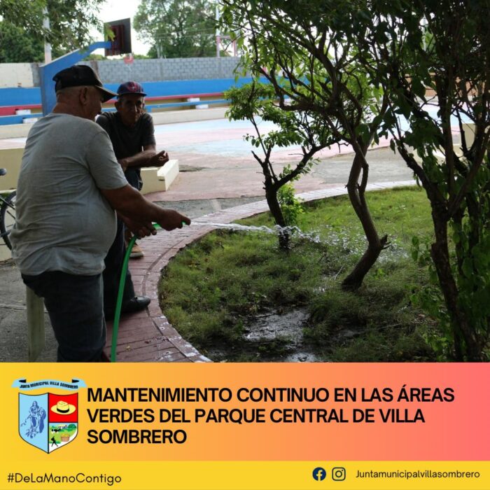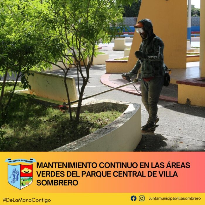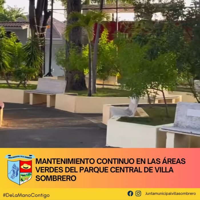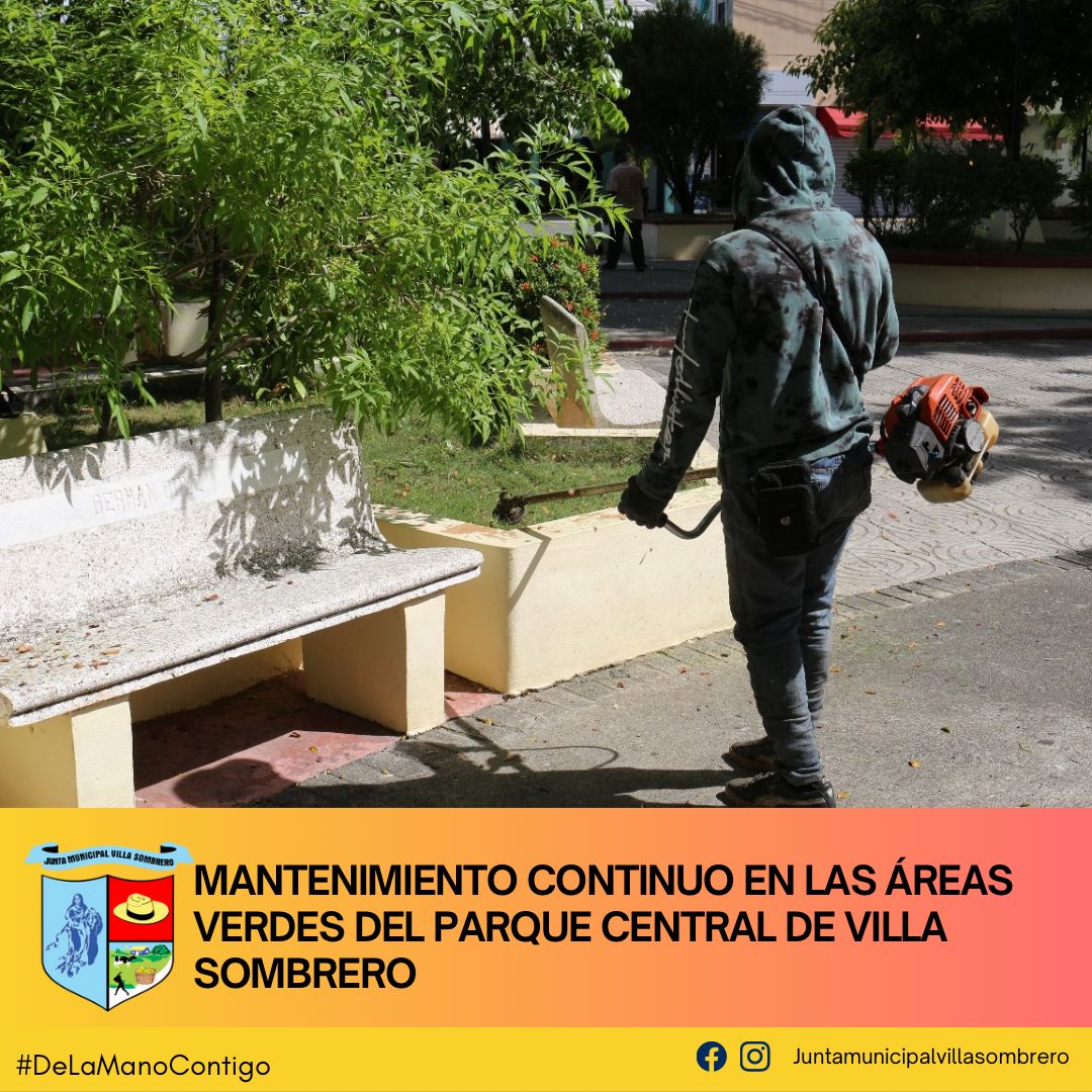 El Departamento de Ornato de la Junta Municipal de Villa Sombrero sigue adelante con las labores de mantenimiento en el Parque Central, reforzando el compromiso de mantener un entorno limpio y cuidado para el disfrute de todos. Como parte de estos trabajos, se están realizando tareas de limpieza y embellecimiento de los jardines, asegurando que nuestras áreas verdes se mantengan en óptimas condiciones.