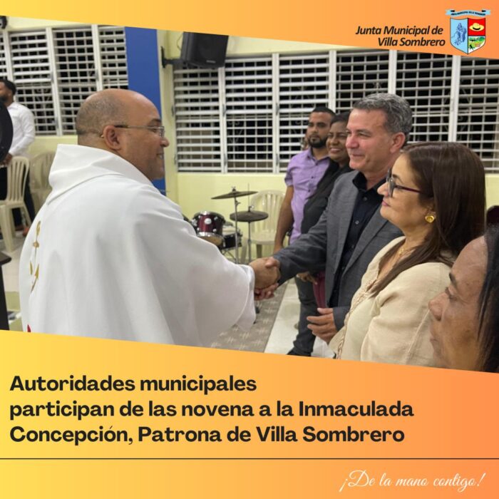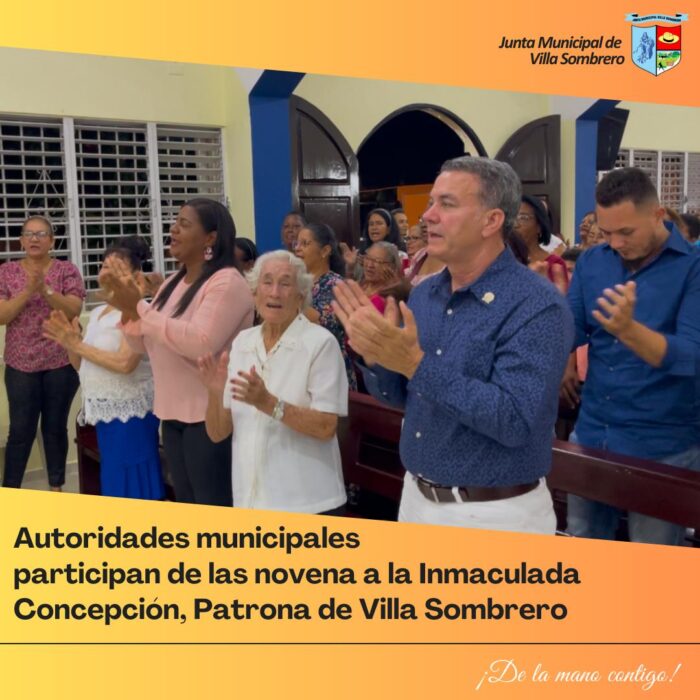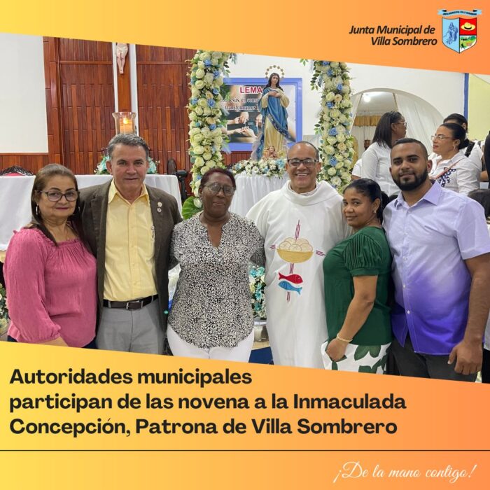 La Junta Municipal de Villa Sombrero participa activamente en las festividades de la Novena dedicada a la Inmaculada Concepción, patrona de nuestra comunidad. Este evento, lleno de devoción y unidad, resalta nuestra fé y el compromiso de las autoridades locales con nuestras tradiciones religiosas.