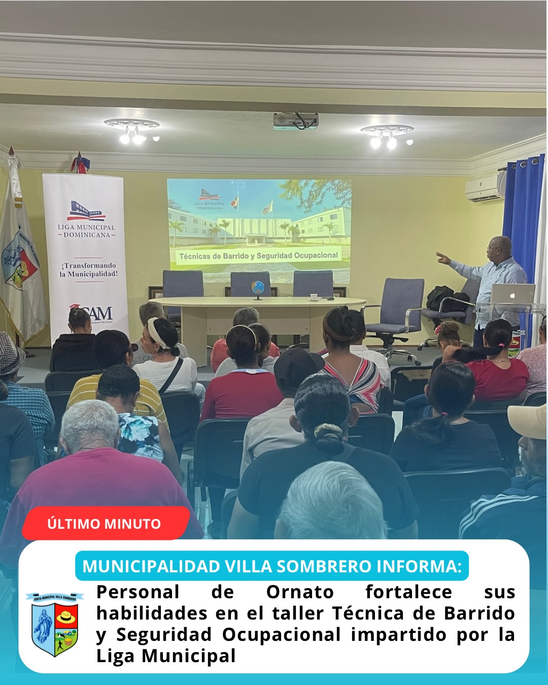 El personal del área de Ornato participó en el taller “Técnica de Barrido y Seguridad Ocupacional”, impartido por la Liga Municipal Dominicana, con el objetivo de fortalecer sus conocimientos y mejorar las prácticas diarias en los servicios de limpieza y mantenimiento urbano.