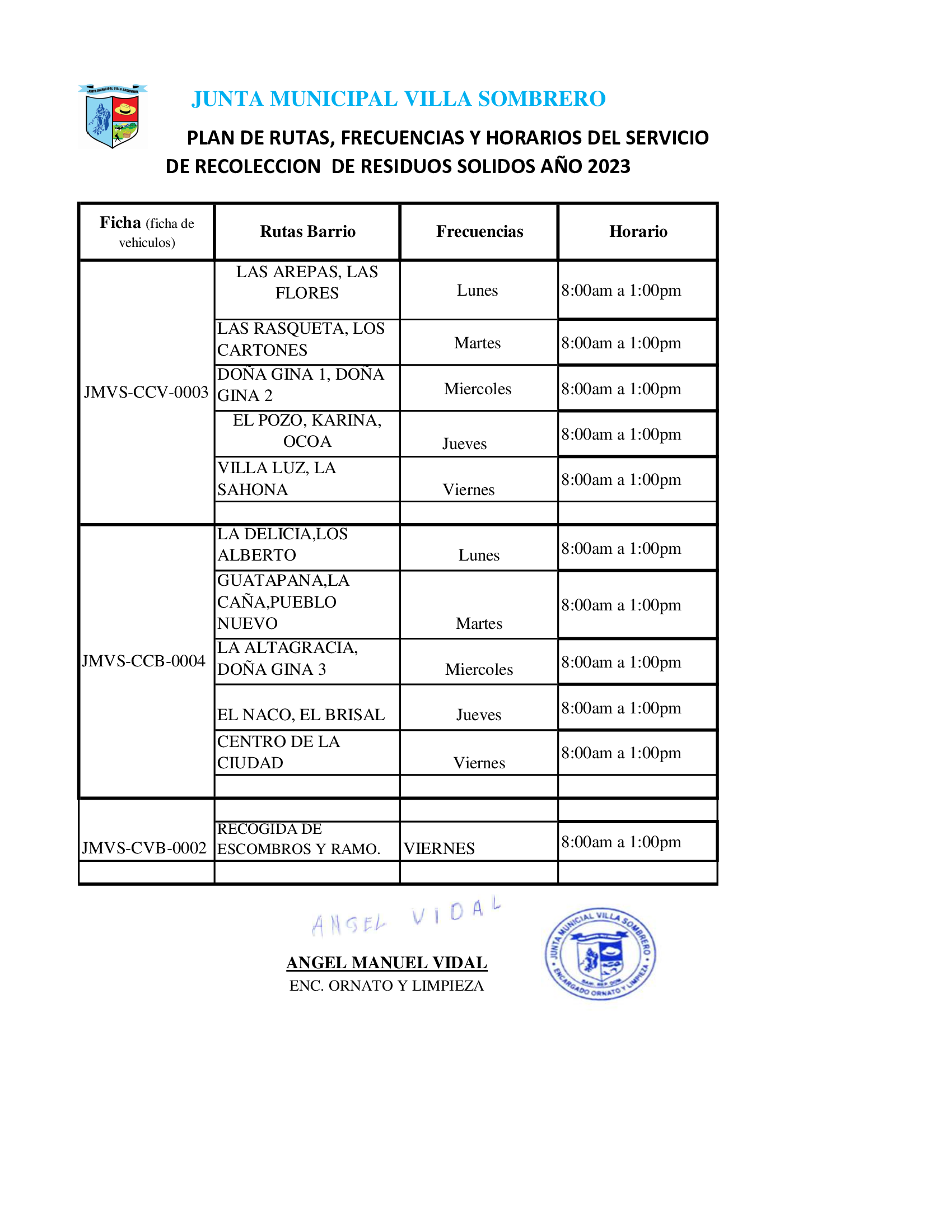 PLAN DE RUTA DE RECOLECCIÓN DE BASURA