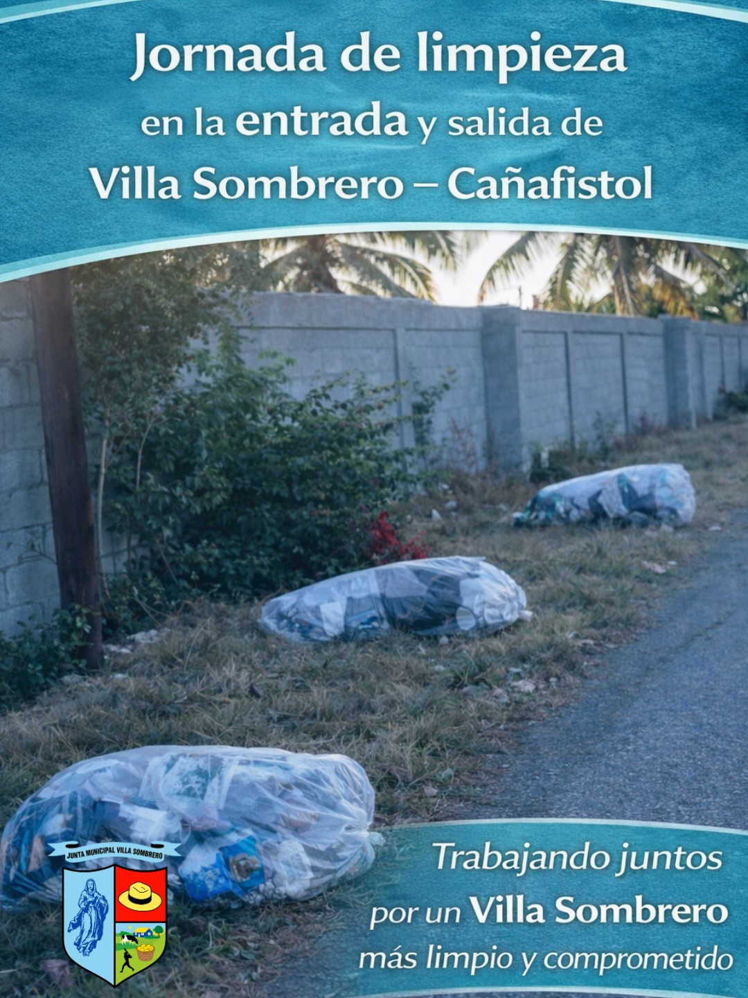 Villa Sombrero.– La Junta Municipal de Villa Sombrero realizó una jornada de limpieza en la entrada y salida del tramo Villa Sombrero–Cañafistol, como parte de las acciones orientadas a mejorar el ornato, la higiene y la imagen del distrito municipal.