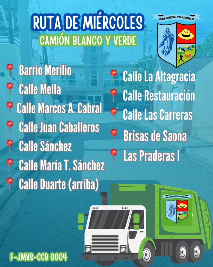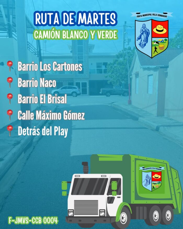 - El servicio de ornato y limpieza de la Junta Municipal de Villa Sombrero se encarga de mantener los espacios públicos en óptimas condiciones, promoviendo un entorno limpio y agradable para la comunidad. A través de jornadas de mantenimiento y embellecimiento, este equipo trabaja comprometido con la calidad de vida de los habitantes y el cuidado del medio ambiente.