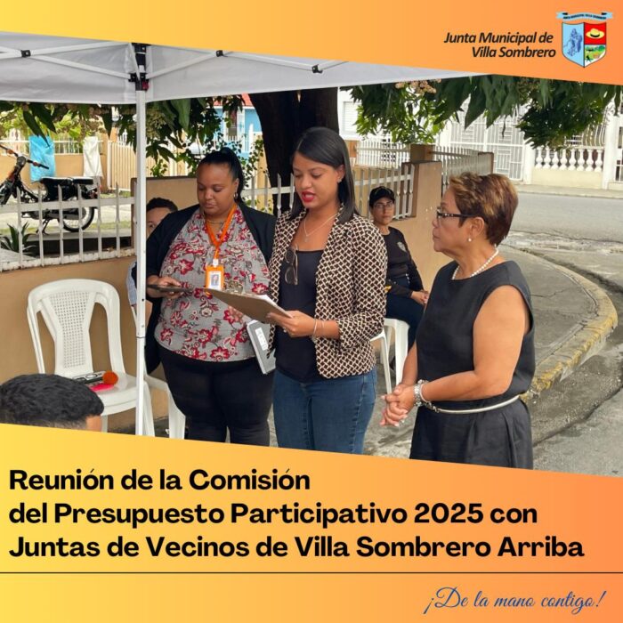 La Comisión del Presupuesto Participativo 2025 de la Junta Municipal de Villa Sombrero llevó a cabo una importante reunión con las Juntas de Vecinos de los sectores de Villa Sombrero Arriba, con el objetivo de escuchar y recibir las propuestas comunitarias que serán presentadas en la próxima convocatoria oficial.
