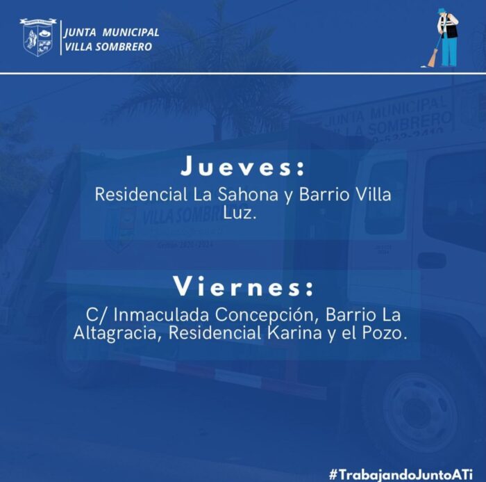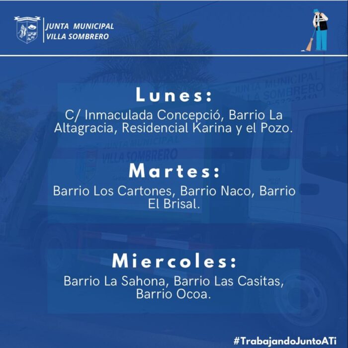 junio 2, 2023 Conoce la Ruta Semanal de Barrido de Basura en la zona de arriba de Villa Sombrero. Comparte y Comenta