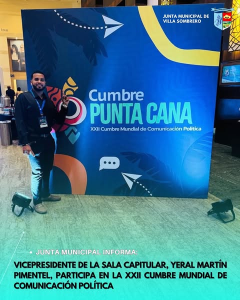 Santo Domingo, R.D. – El vicepresidente de la Sala Capitular del Distrito Municipal de Villa Sombrero, regidor Yeral Martín Pimentel, participó en la XXII edición de la Cumbre Mundial de Comunicación Política, celebrada recientemente con la presencia de destacados profesionales de toda Iberoamérica.