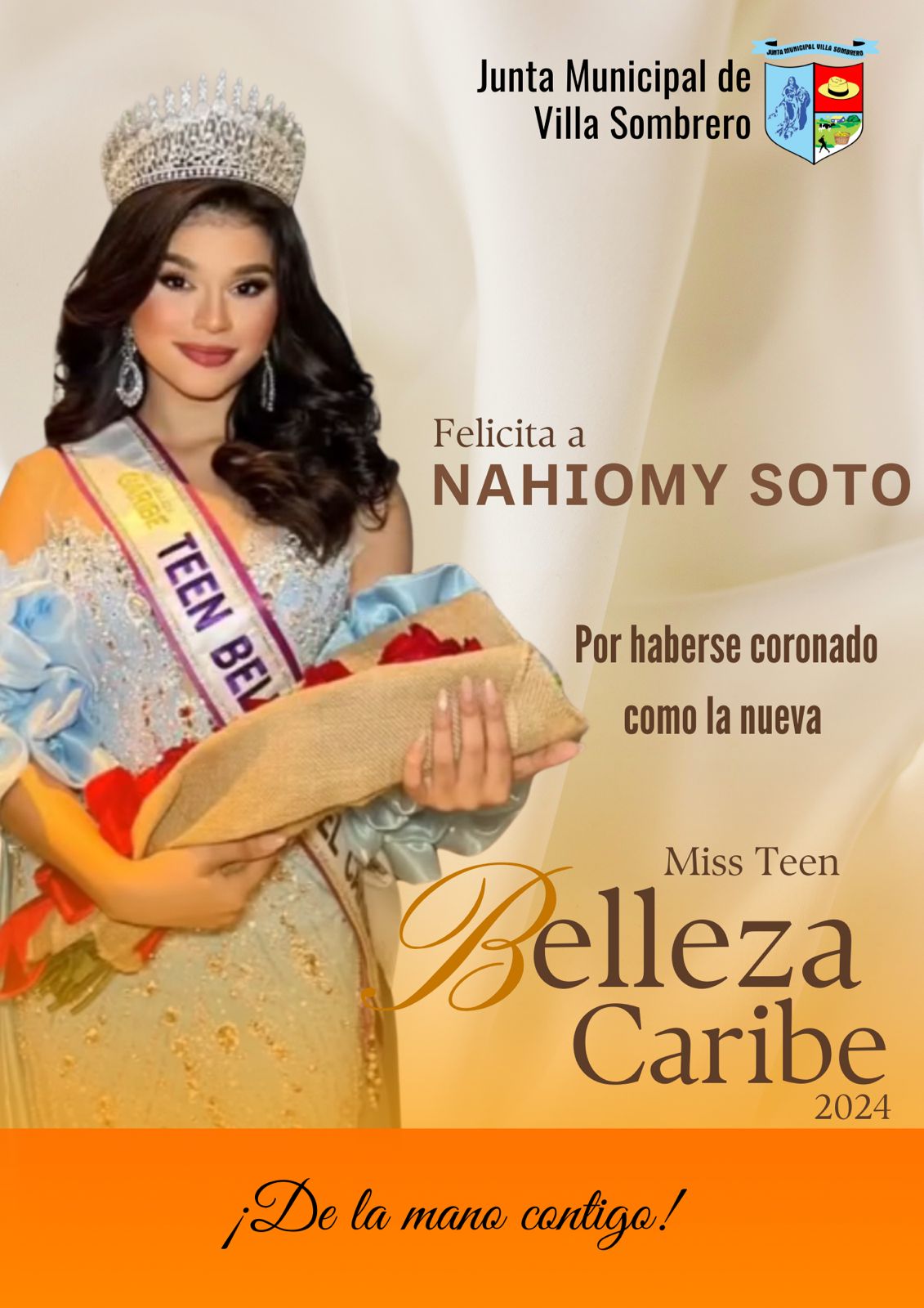 Con gran orgullo compartimos que la ex Reina de nuestra comunidad de Villa Sombrero Nahiomy Soto, ha sido coronada como la nueva Teen Belleza Caribe 2024, en una destacada ceremonia celebrada en el Teatro La Fiesta del Hotel Jaragua, representando con honor a la provincia Peravia.